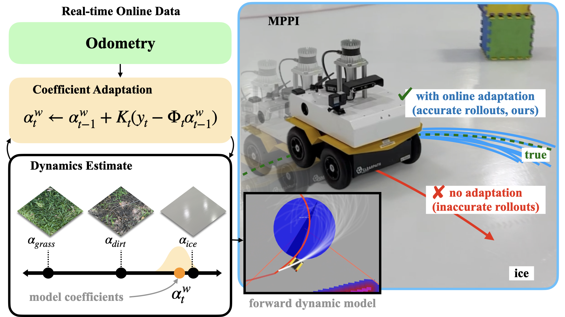 W. Ward, S. Etter, T. Ingebrand, C. Ellis, A. Thorpe, U. Topcu, "Online Adaptation of Terrain-Aware Dynamics for Planning in Unstructured Environments," RSS 2025 Workshop on Resilient Off-road Autonomous Robotics, 2025.